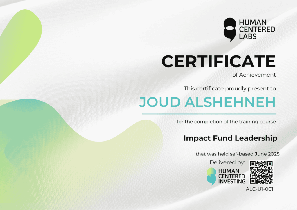 🌱 وبينما تبحث عن طريق واضح، وجدت دورة تأهيل قيادات صناديق الاستثمار الاجتماعي من الشبكة العالمية للاستثمار الاجتماعي، وباللغة العربية — دورة قصيرة ومكثّفة، قدّمت لها أدوات عملية لبناء صندوق استثماري يصنع الربح… ويترك أثرًا.